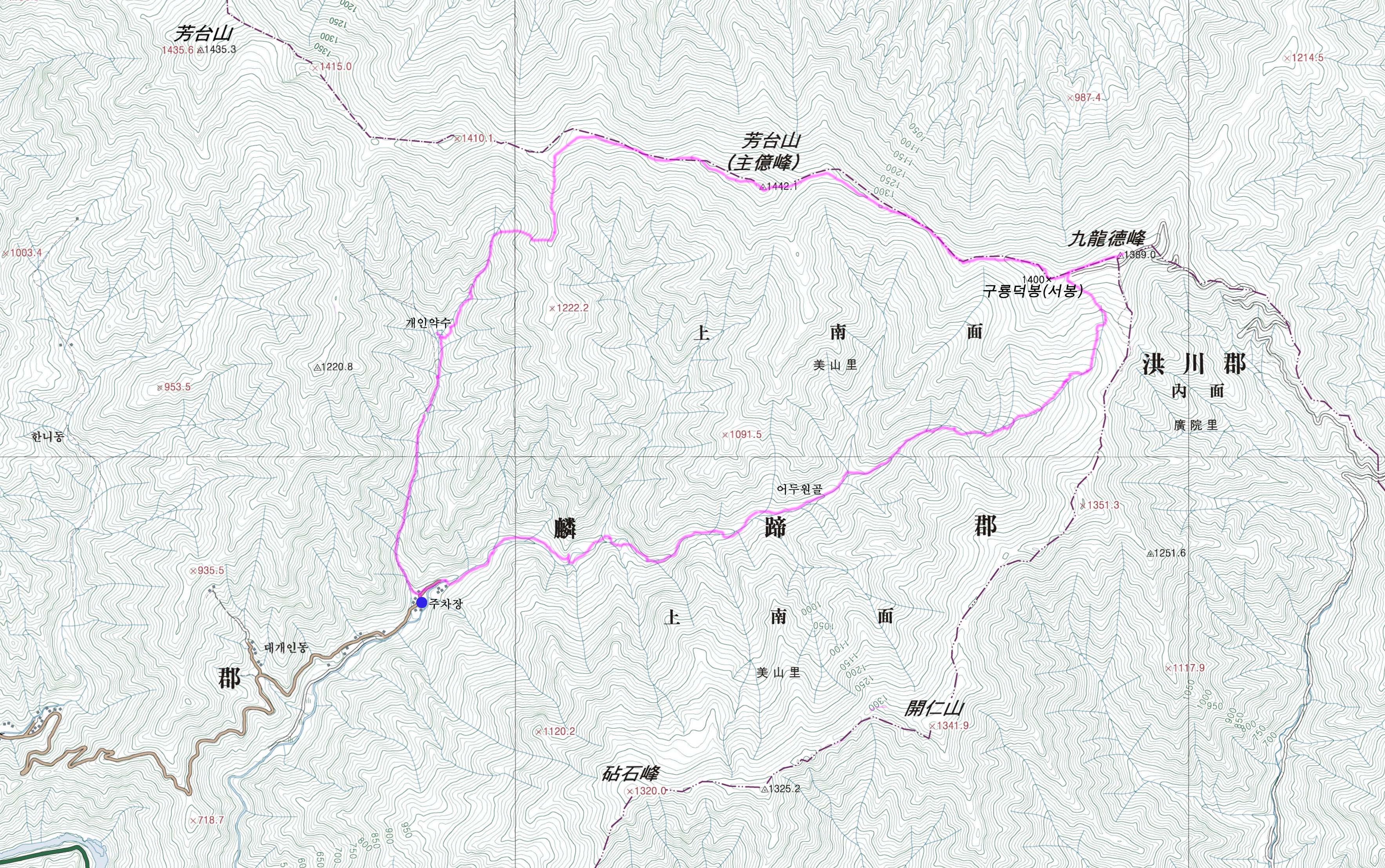 미산너와집/개인약수주차장-어두원골-구룡덕봉(△1389.0)-구룡덕봉서봉(×1446.1)-주억봉(△1442.1)-1370봉