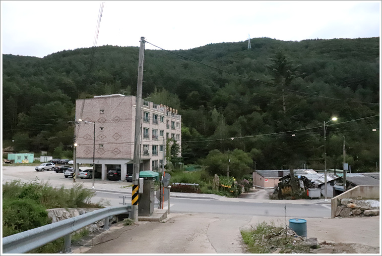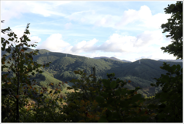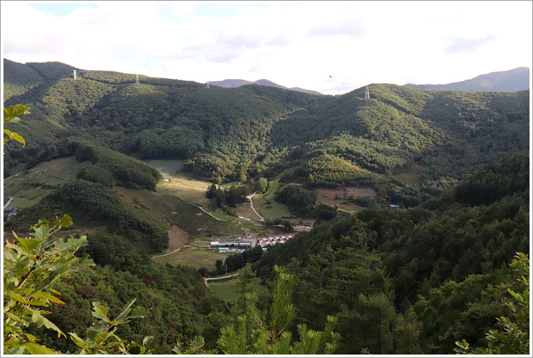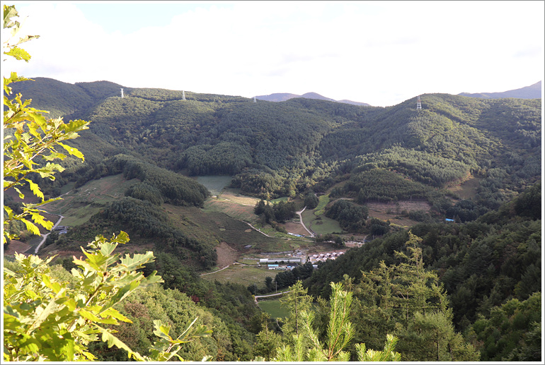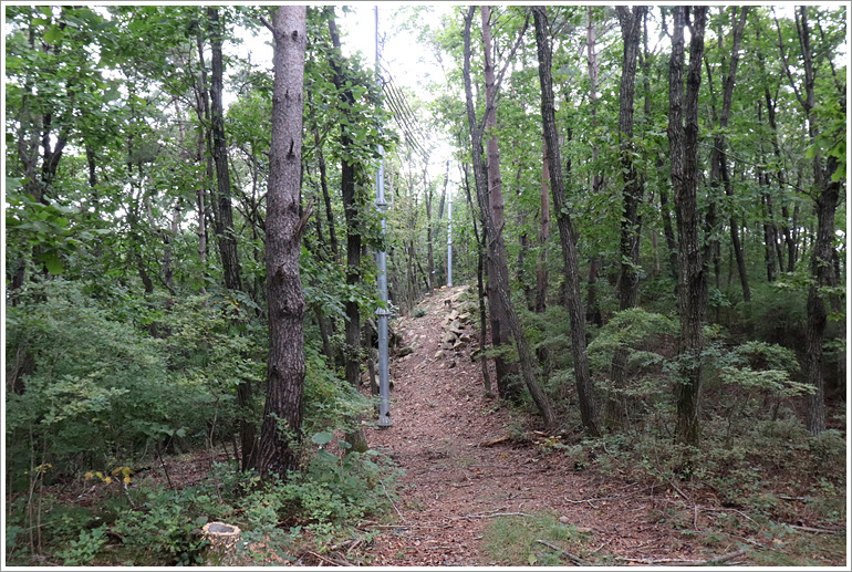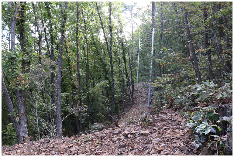 (이제껏 날등 옆으로 나란히 하던 전선길은 좌사면쪽으로 내려서고)