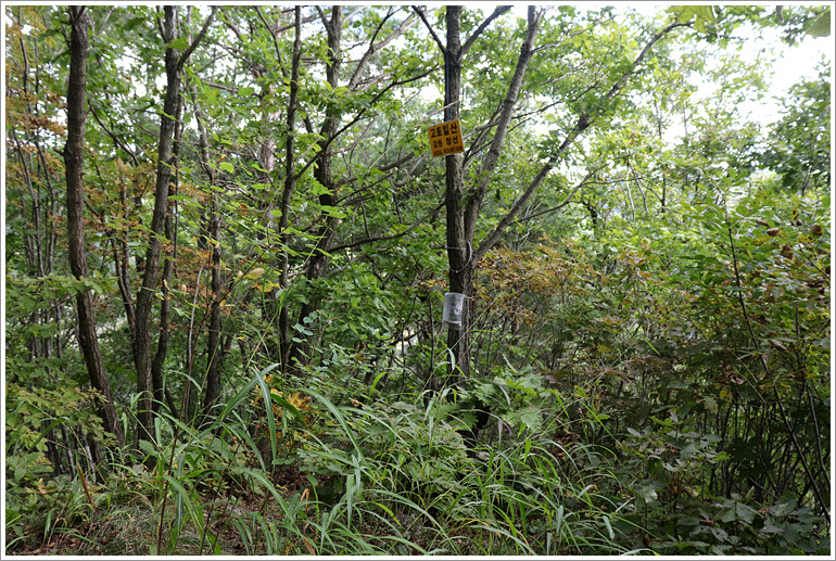 (반듯한 이정표가 있었지만 등산로 폐쇄라는 푯말과 함께 희미한 족적)