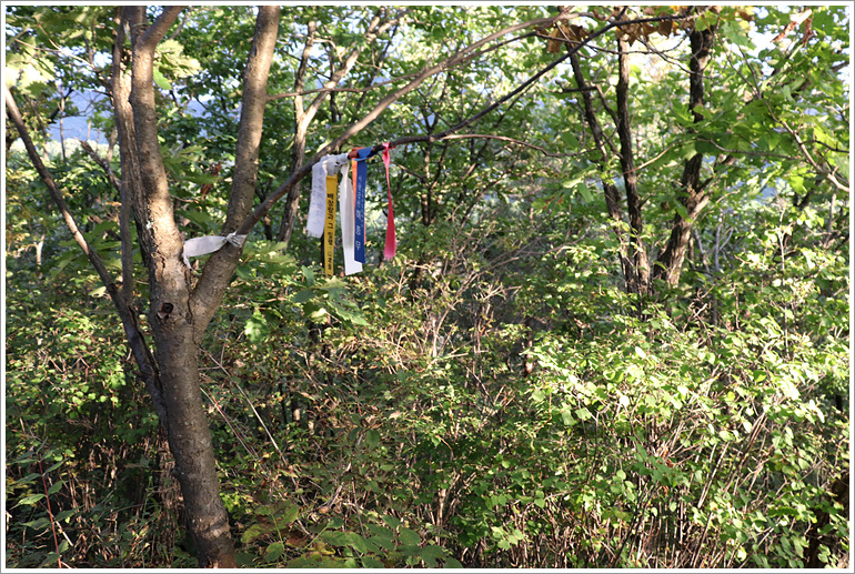 주황식 표지기가 있기에 우회길인 줄 알고 우측 급사면쪽을 잠깐 내려섰다가 되올라 서기도... 잘 못 부착된 것이다)