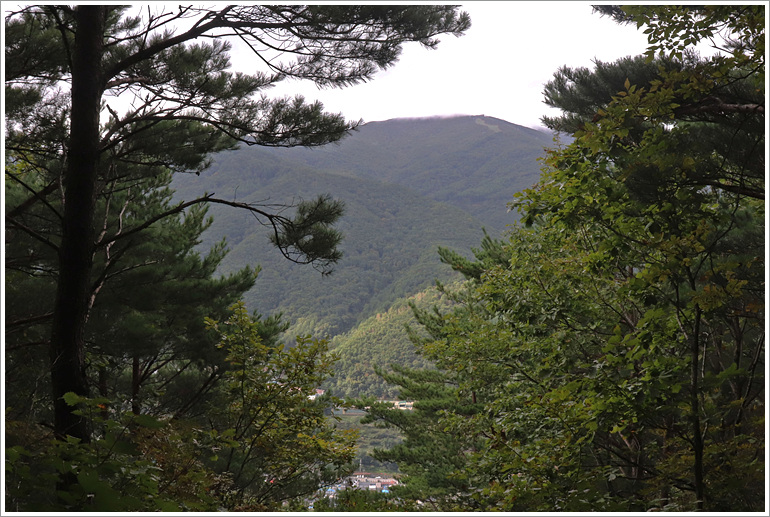 (나무 사이 백운산)