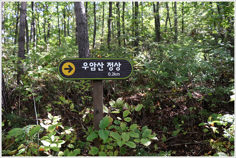 (우측으로 휘돌아 오르면 벤치 두 개 보이면서 우암산 정상석이 세워져 있는 ×1175.4봉)