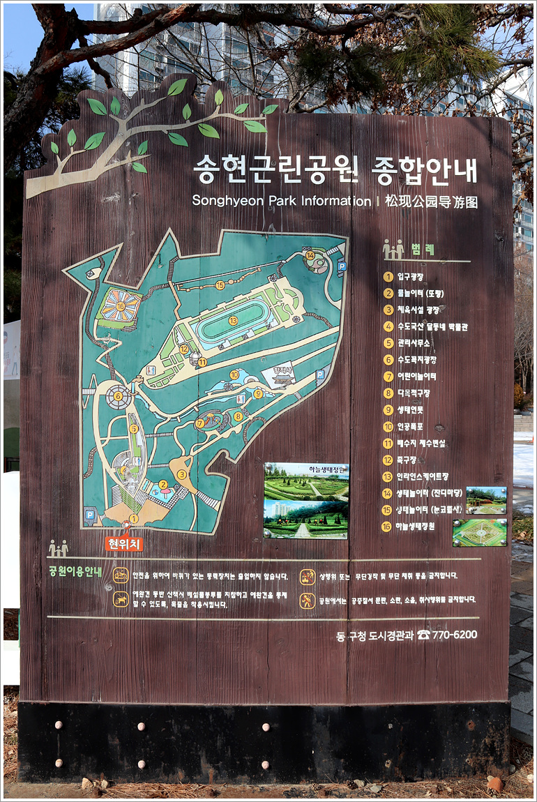 (솔빛로를 잠깐 오르면 수도국산에 조성되어 있는 송현근린공원이다)