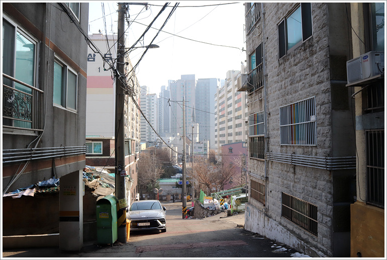 (예전에는 판잣집 동네라는 기억인데 고층아파트들이 꽉 들어서 있다)
