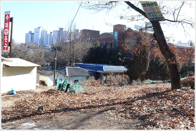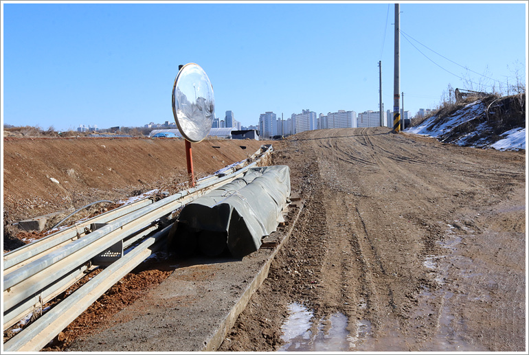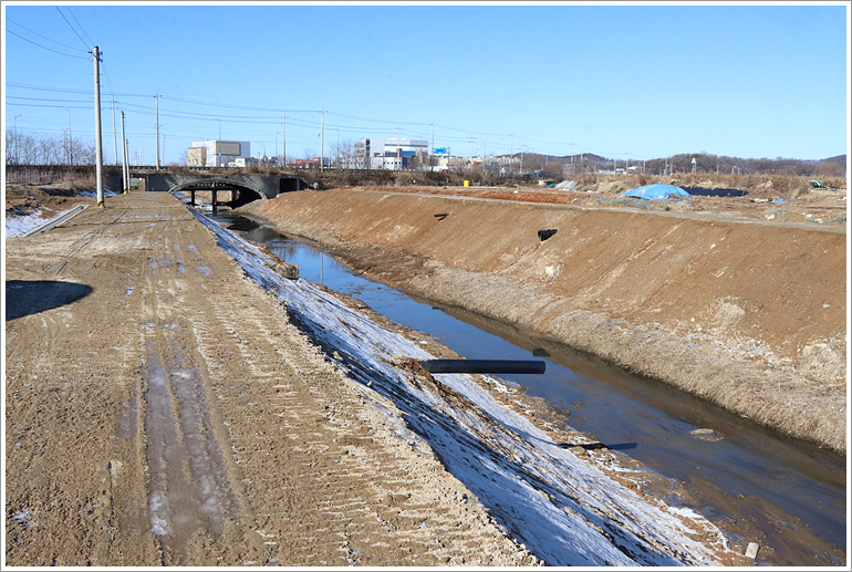 (복개 공사가 마무리되지 않은 상태라 땅이 얼었음에도 질퍽거려 걷기가 조금