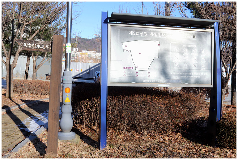 (제5호 공원 종합안내판이 있는 황금로 사거리 앞으로 내려선다)