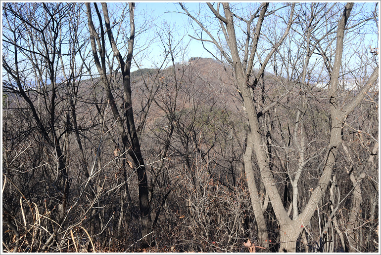 (신호 두 번 건넌 뒤 대각선 방향에서 되돌아 본 목안정 봉우리)