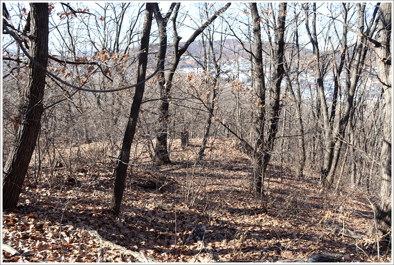 (전면으로 보이는 아파트쪽으로 적당히 치고 내려설까 했는데 절개지로 이루어져