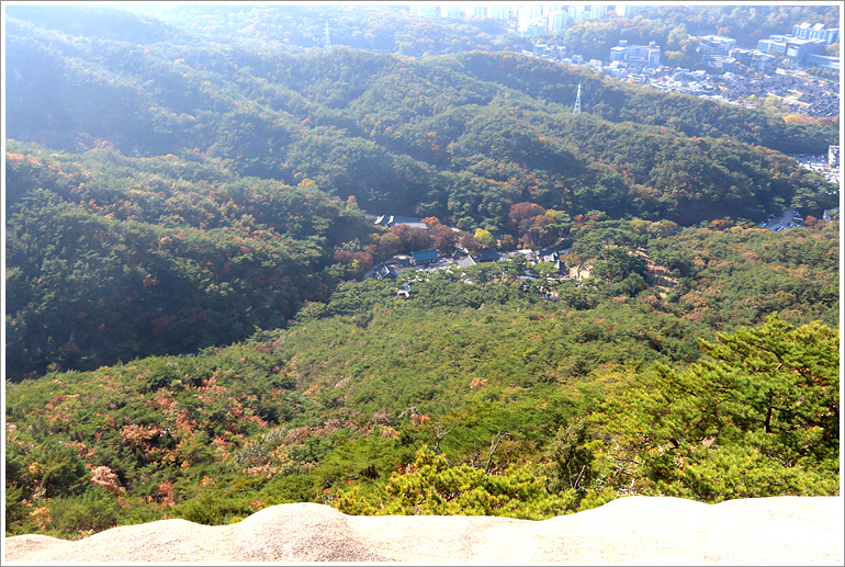 (사면으로 내려서는 등로 벗어나 잠깐 오르면 진관사가 한눈에 내려보이는