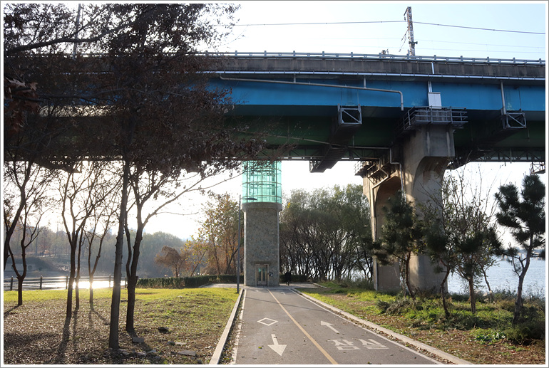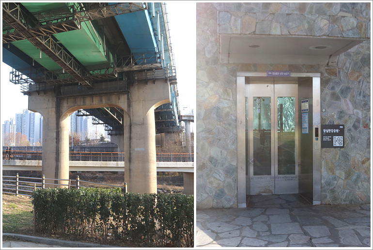 (잠실철교 뒷쪽으로 엘리베이터가 보인다)