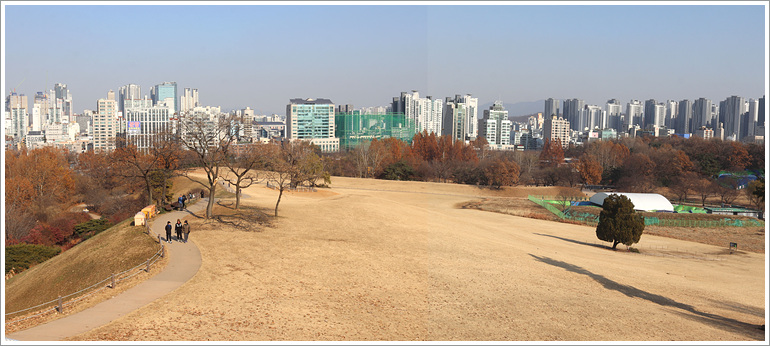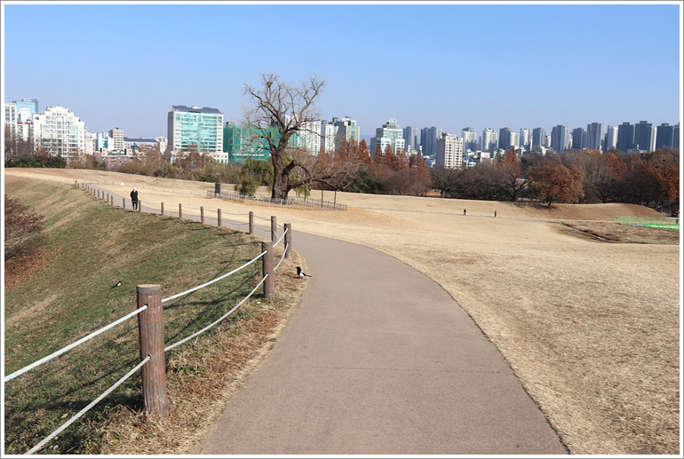 (몽촌팔각정이 있는 곳으로 건너갈 생각을 하면서 직진으로...)