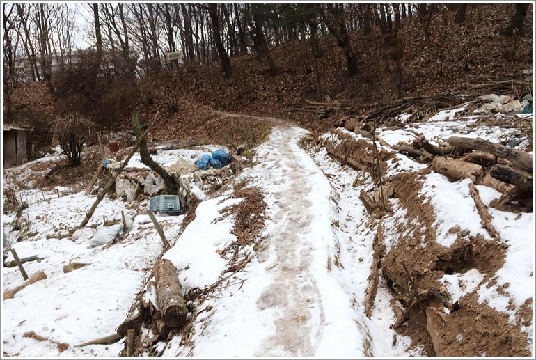 자물쇠로 채워진 것은 아니기에 빗장 열고 들어간 뒤 원래대로 해 놓고 산길로 들어선다)