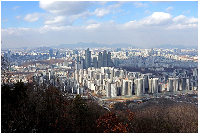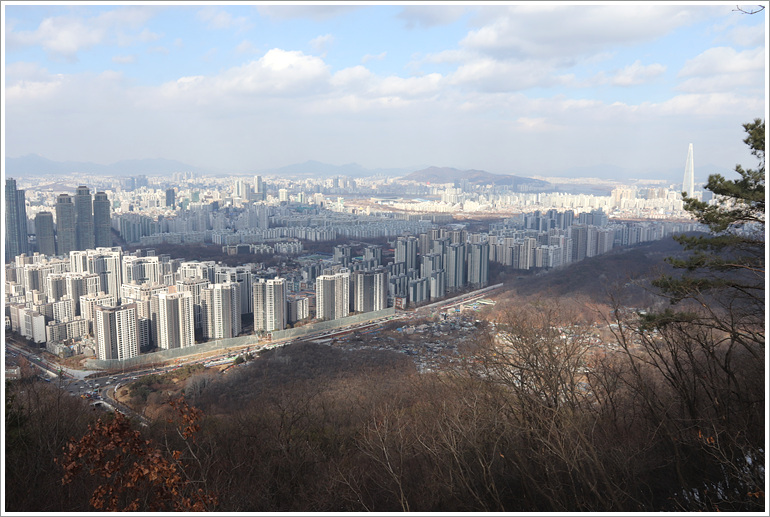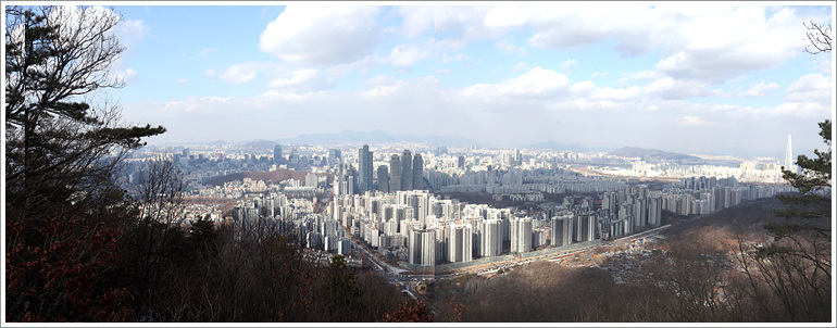 (좌측 지나온 매봉산과 그 뒤 남산)