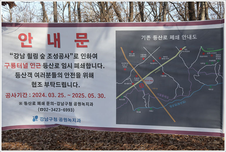 -공원표지석(13:00)-용이룸다리/개포로22길(13:09)-용오름다리/양재대로(13:15)-서울둘레길합류(13:19~27)