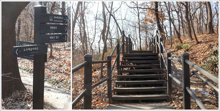 (잠깐 서울둘레길 따르다가 우측 구룡산 오름길로 들어선다)