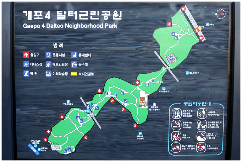 대중교통을 이용, 수인분당선 한티역을 출발하여 도곡근린공원에 위치한 매봉산 먼저