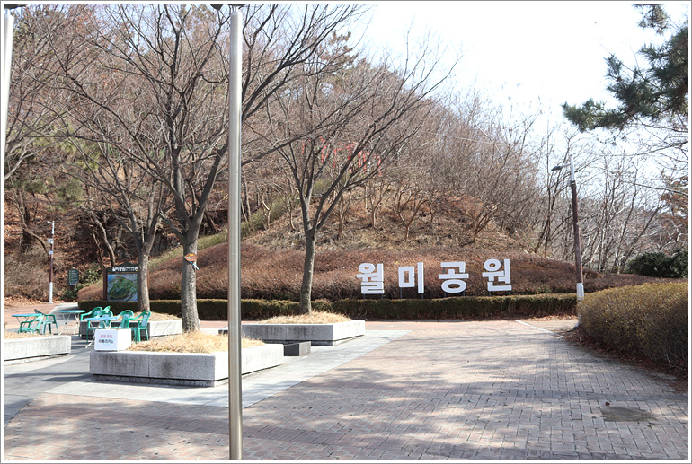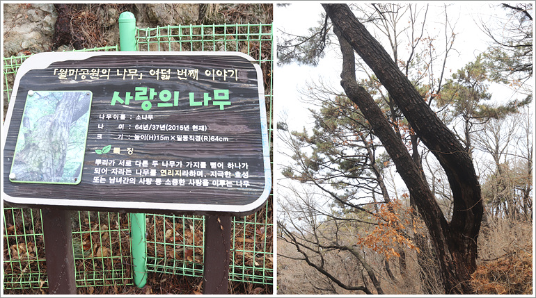 -사랑의나무(10:35)-정상광장(10:37)-월미산(10:41~46)-전망대(10:53~11:02)-다시일어선나무(11:04)