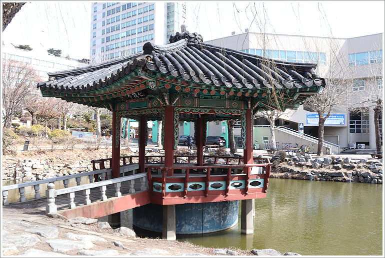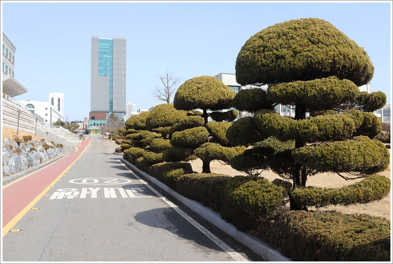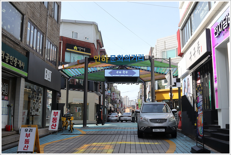 (횡단보도 건너 인하대 캠퍼스로 들어선다)