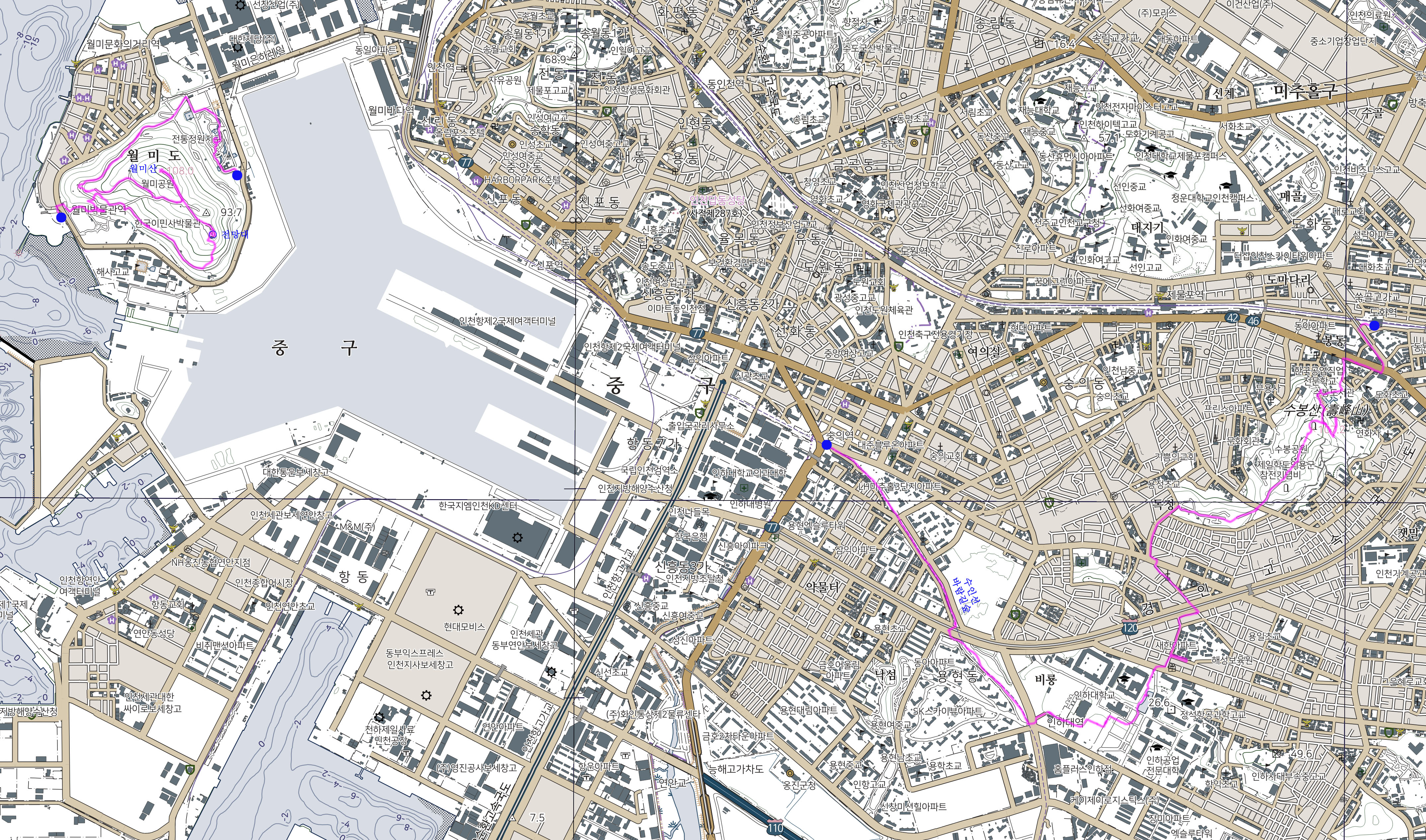 월미도/전통정원-월미산(×108.0)-전망대-월미테마파크-숭의역-수인선바람길숲-인하대역-인하대-인하문화의거리