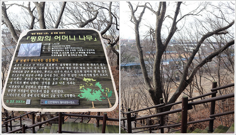 -둘레길(11:08)-평화의어머니나무(11:13)-여양정(11:16)-무장애데크길(11:19)-월미테마파크(11:29)