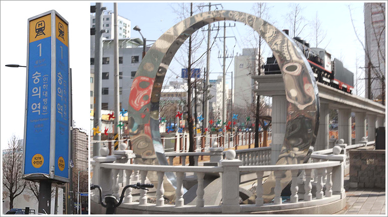 (수인선 바람길숲이 시작되는 숭의역 1번출구)