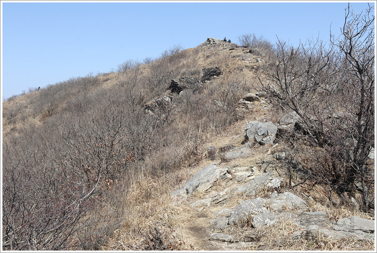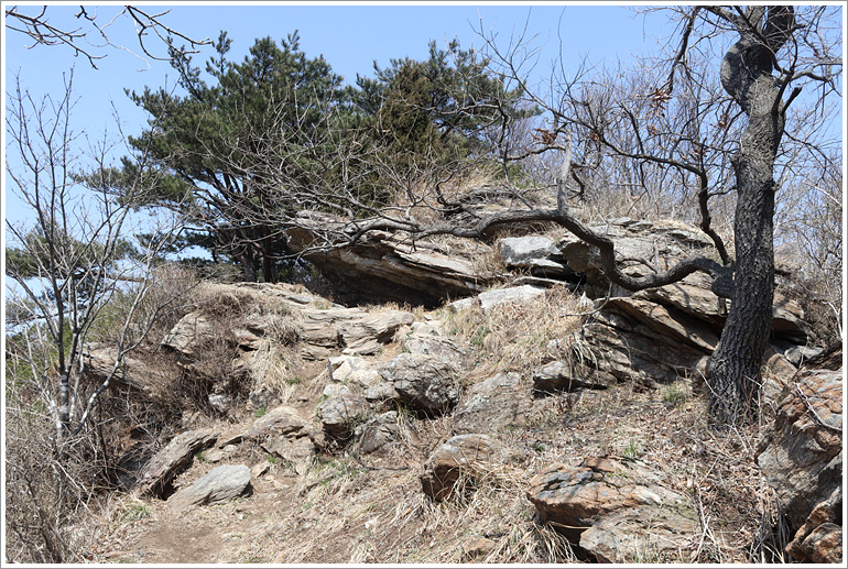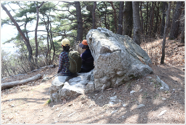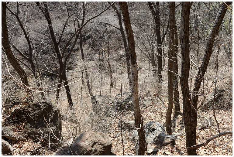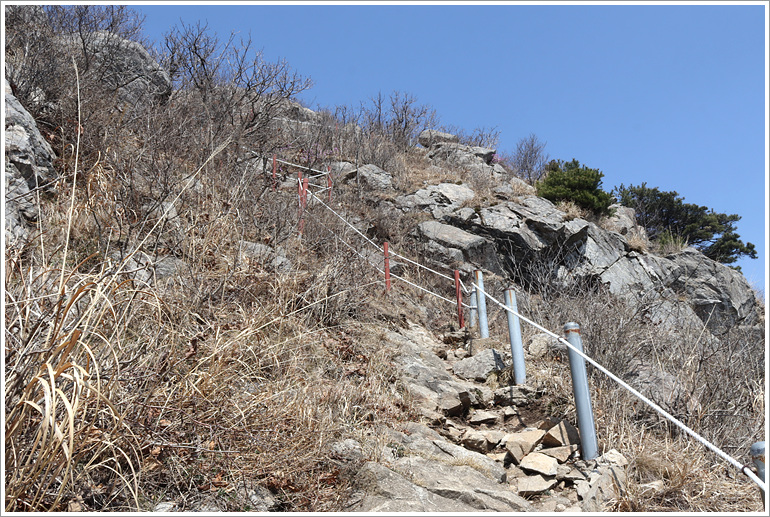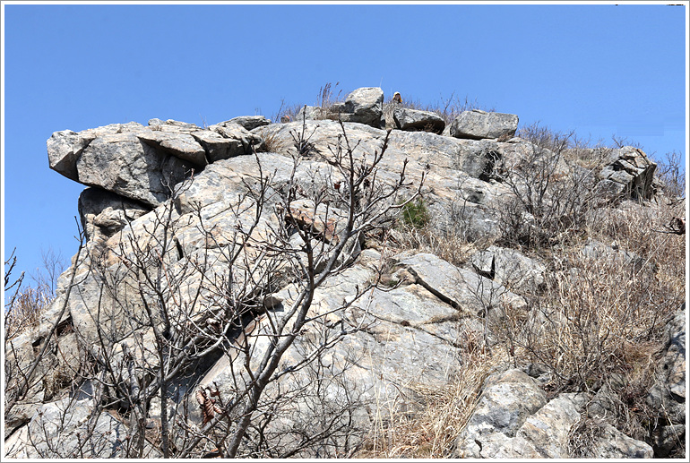 (능선 복귀... 아래쪽은 폐채석장 수직 절개지이다)