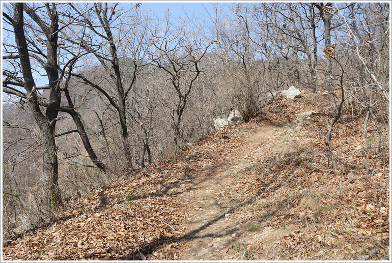 (주능선상 폐채석장 절개지가 나오면서 우측으로 길게 돌아가게끔 되어 있다)