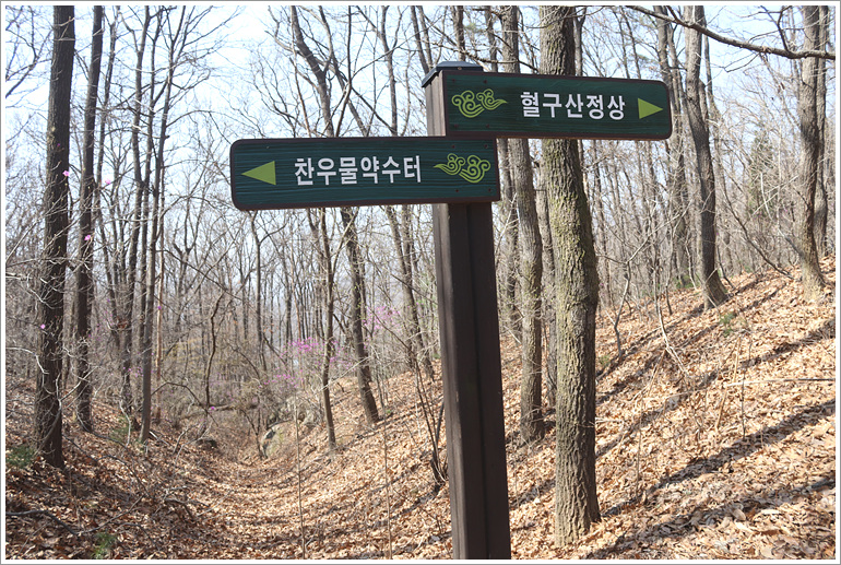 찬우물고개아래-광산터-혈구산(×460)-△267.2-동릉-계곡-시리미로-성산예수마을-노적산안부-남산(△222.5)