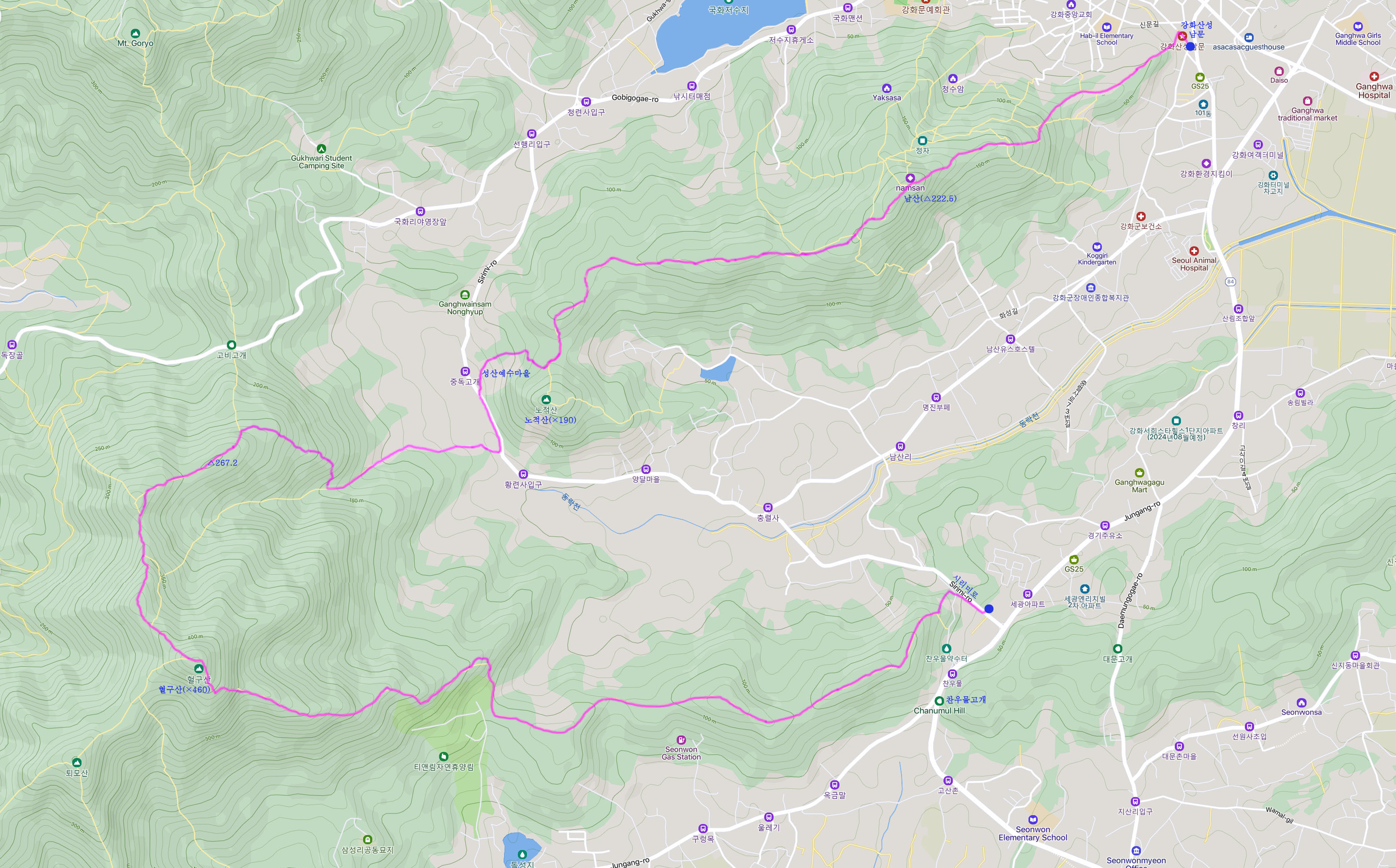 당시 진행한 코스 중 찬우물능선 경유 혈구산을 오른 뒤 남산능선과 강화나들길