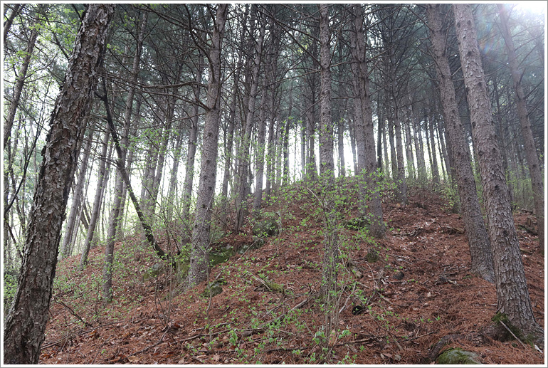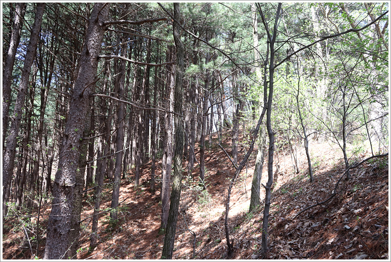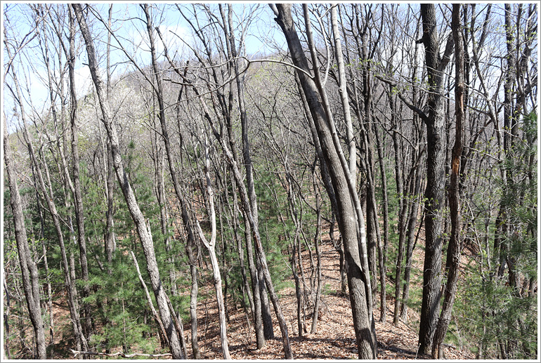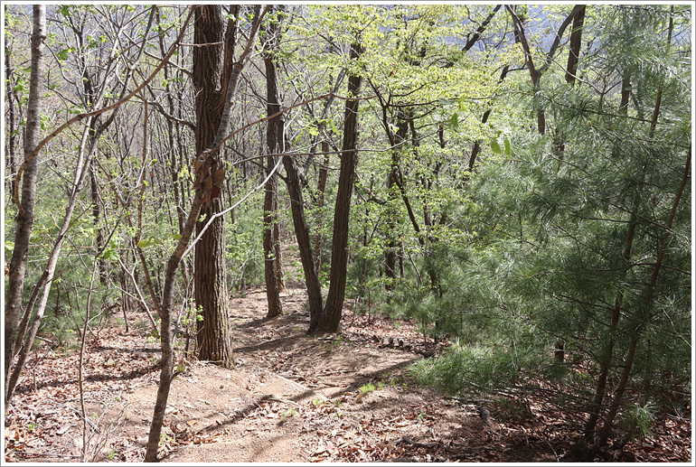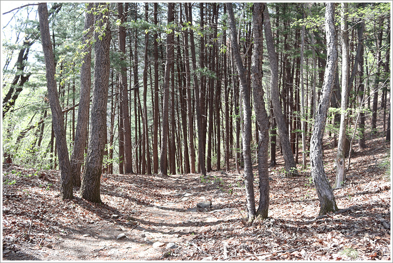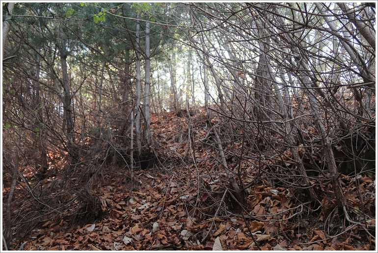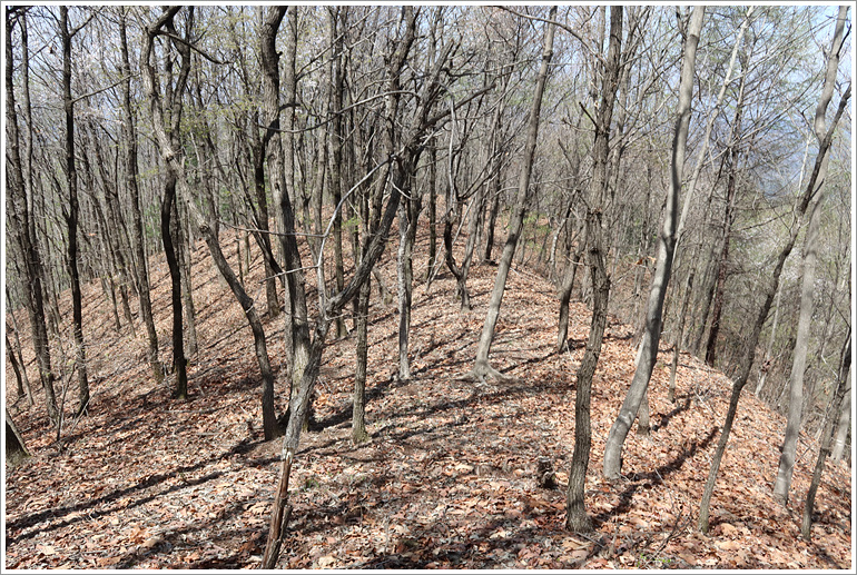 (대곡고개에 이를 때까지 일부 잡목지대와 함께 능선이 수시로 갈려 바짝