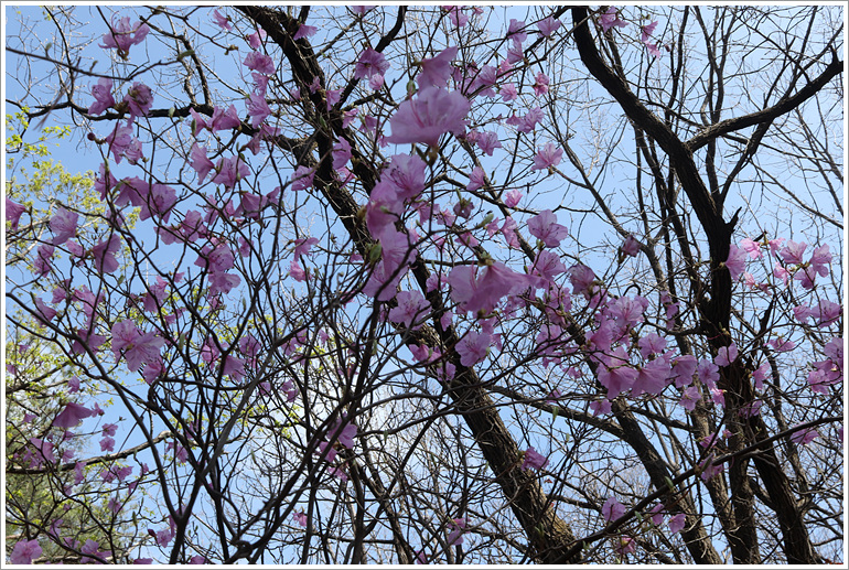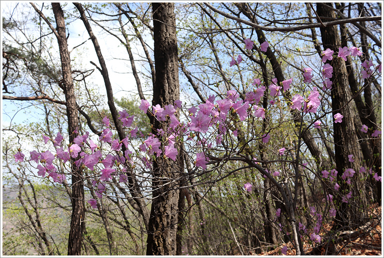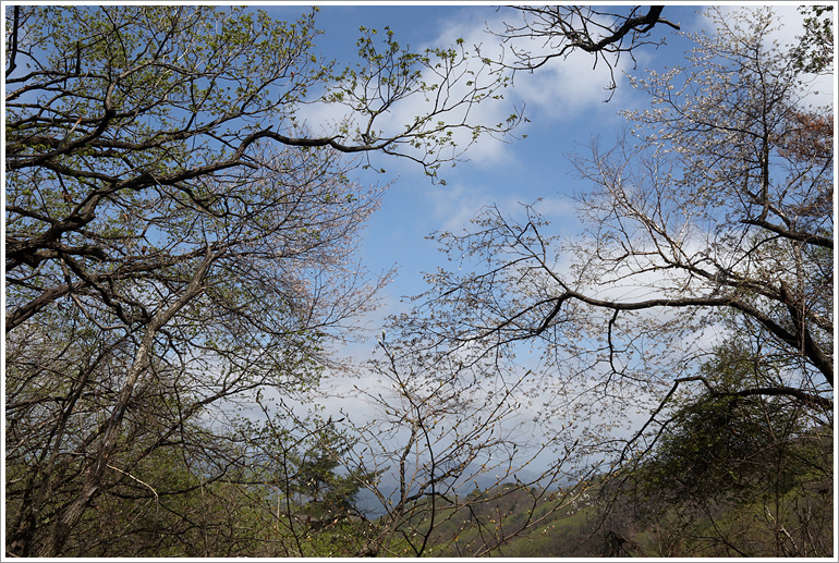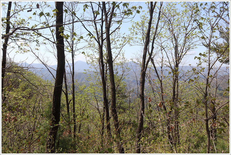 (오전에 뿌옇던 두릉산 남쪽 지능선이 파란 하늘 속 전모를 들어낸 상태로 바뀌어