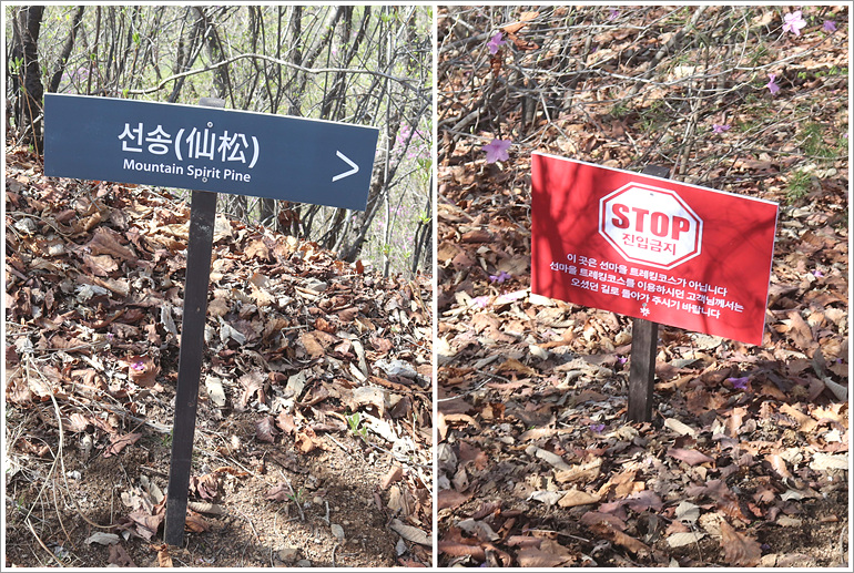 (지나온 방향으로 선송이정표와 트레킹코스가 아니니 진입하지 말라는 표시가