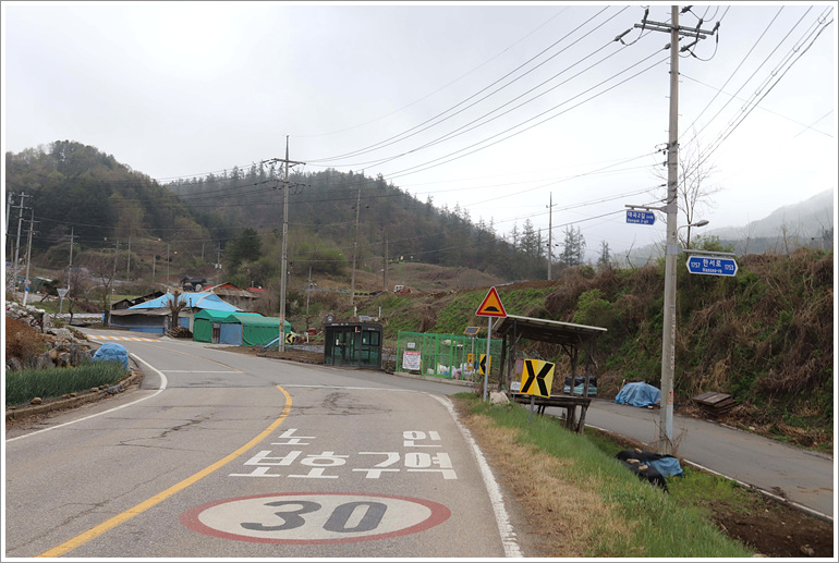 (한서로 도착... △321.5봉을 넘을까 말까 고민하다가 그냥 도로 따라 가기로)