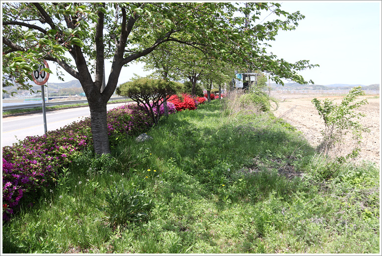 (도로 따라 조성된 연산홍)
