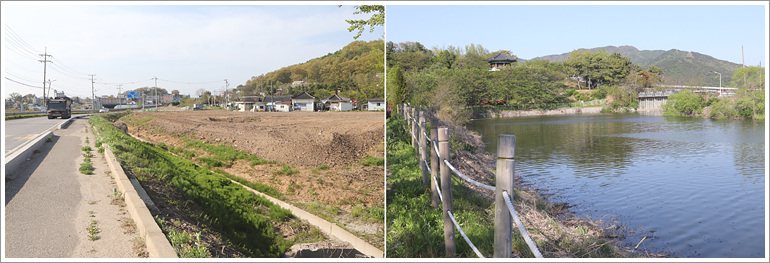 (도로가 저만치 떨어져 있다)