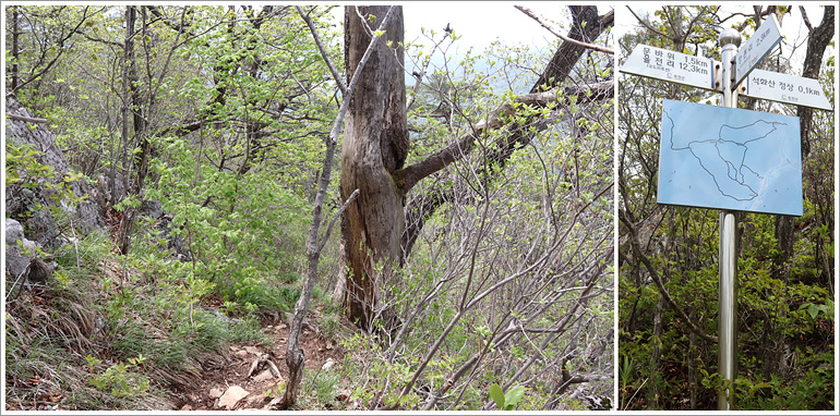 (지도상 석화산 방향 하산길이 갈리고)