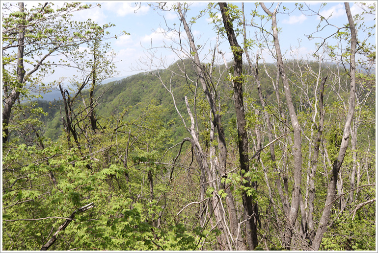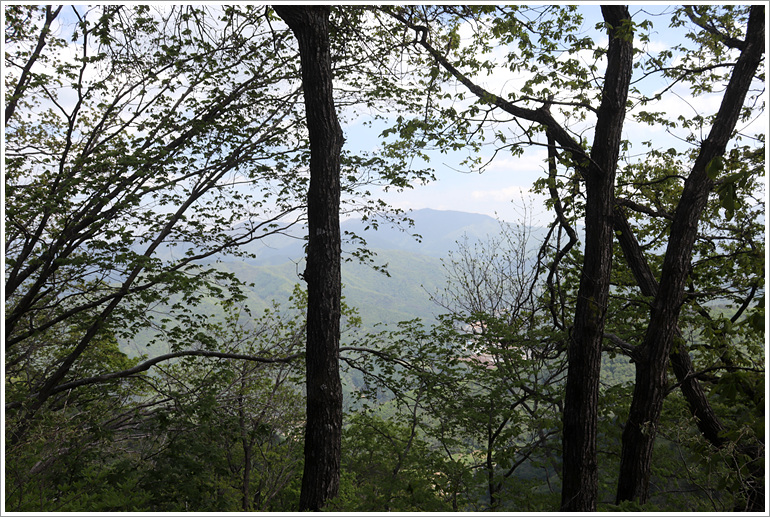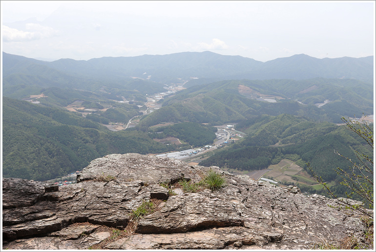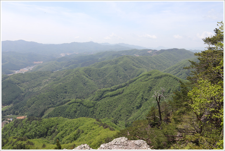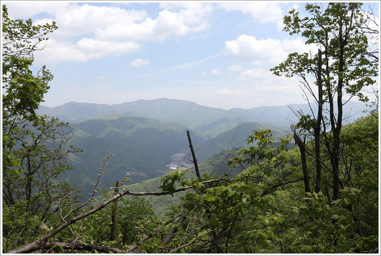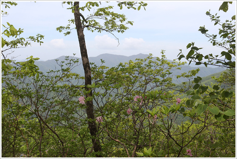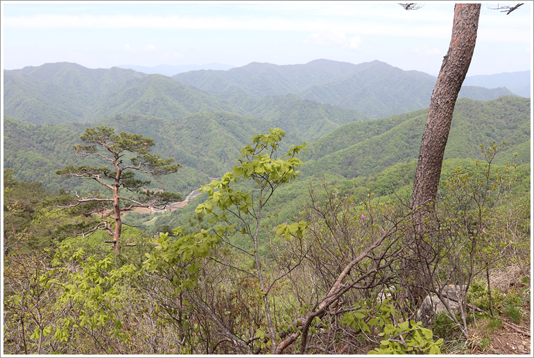 (지나온 능선과 맹현봉 방향으로 시야가 탁 트이는 조망바위 자나고)
