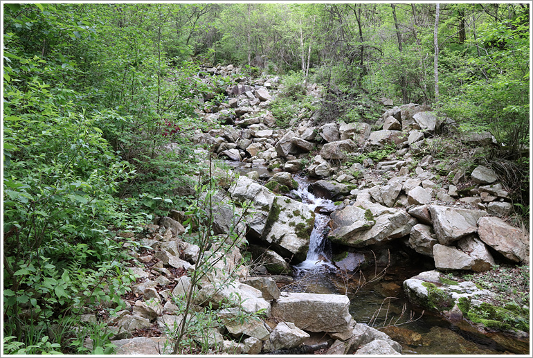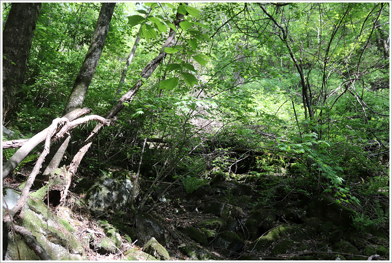 (그러나 산길은 고사하고 대부분 빽빽한 잡목지대로 이루어진 계곡... 계곡치기