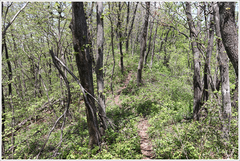 (우측에서 주등산로가 올라오면서 이후는 반반한 산길)