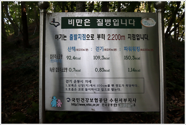 (밋밋한 내림으로 바뀌면서 수원팔색길 안내판이 보이기 시작한다)