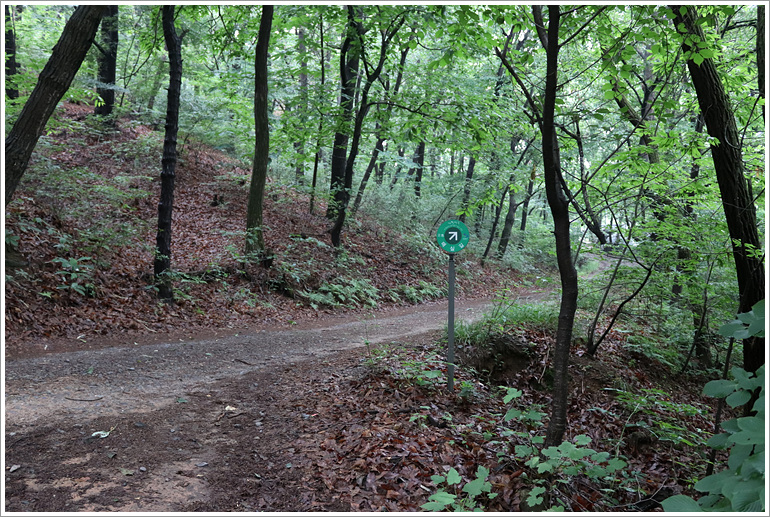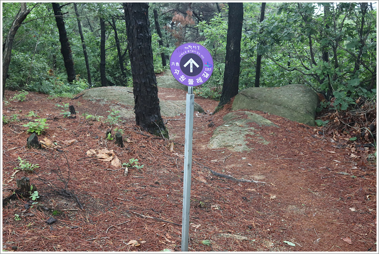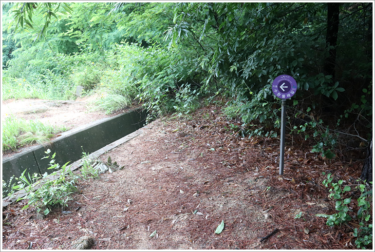 (능선 3거리에서 팔색길 표시판이 안내하는 우측으로)