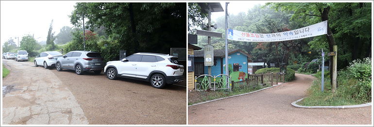여가녹지에 주차한 뒤 서봉지맥