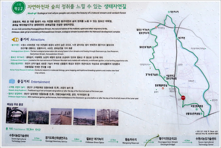 (3색 매실길은 수원시농업기술센터- 경기도건설본부-칠보산여가녹지-왕송저수지-황구지천-수원농업기술센터로