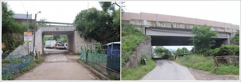 (예전 서봉지맥을 할 때는 생태육교가 없었고 우측으로 좀 더 진행... 지하통로로