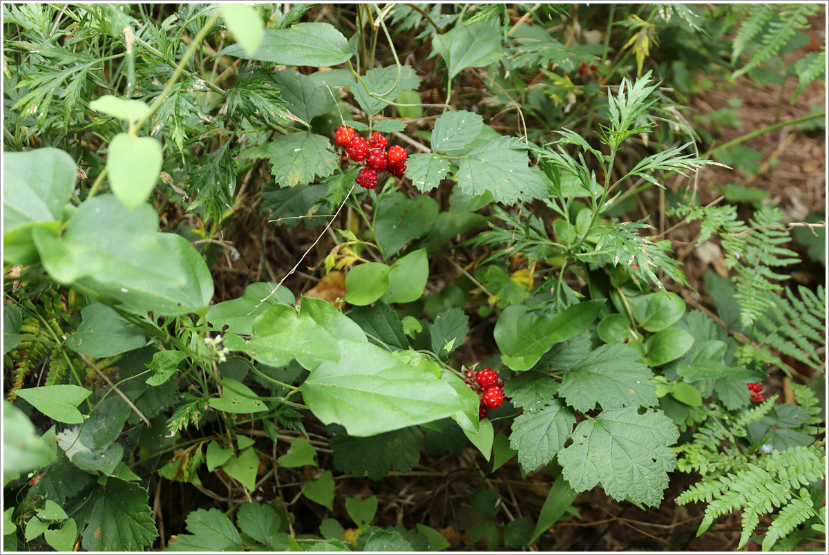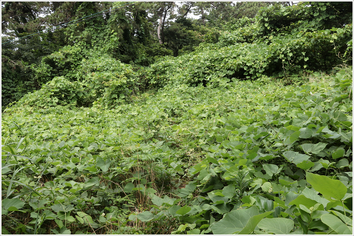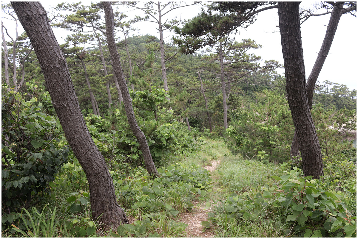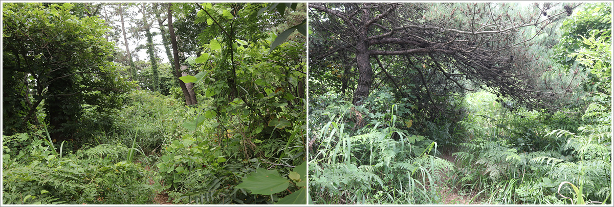 (편안한 산길이라고 생각했는데 여름에는 안 다니는지 키를 덮는 잡목지대로 이어져 당혹스럽다)