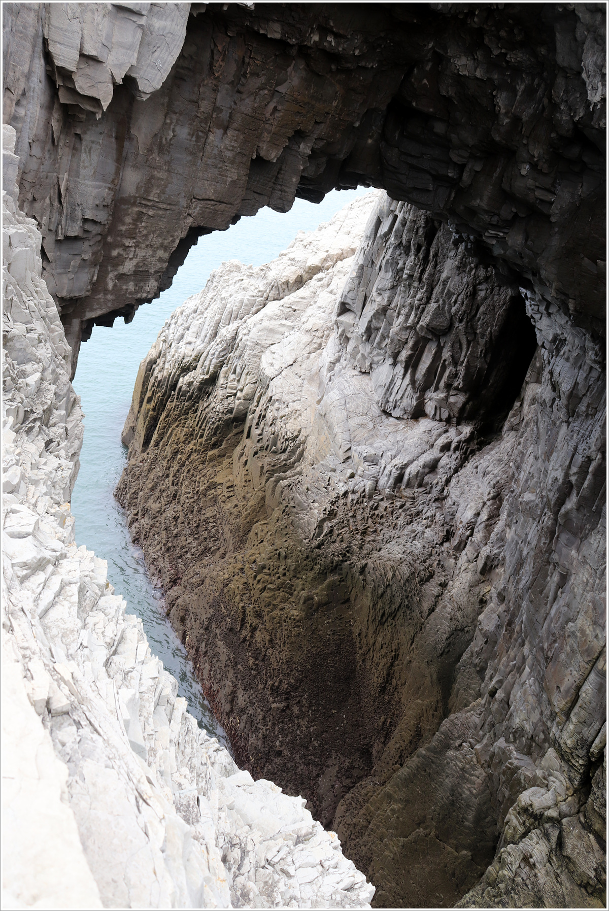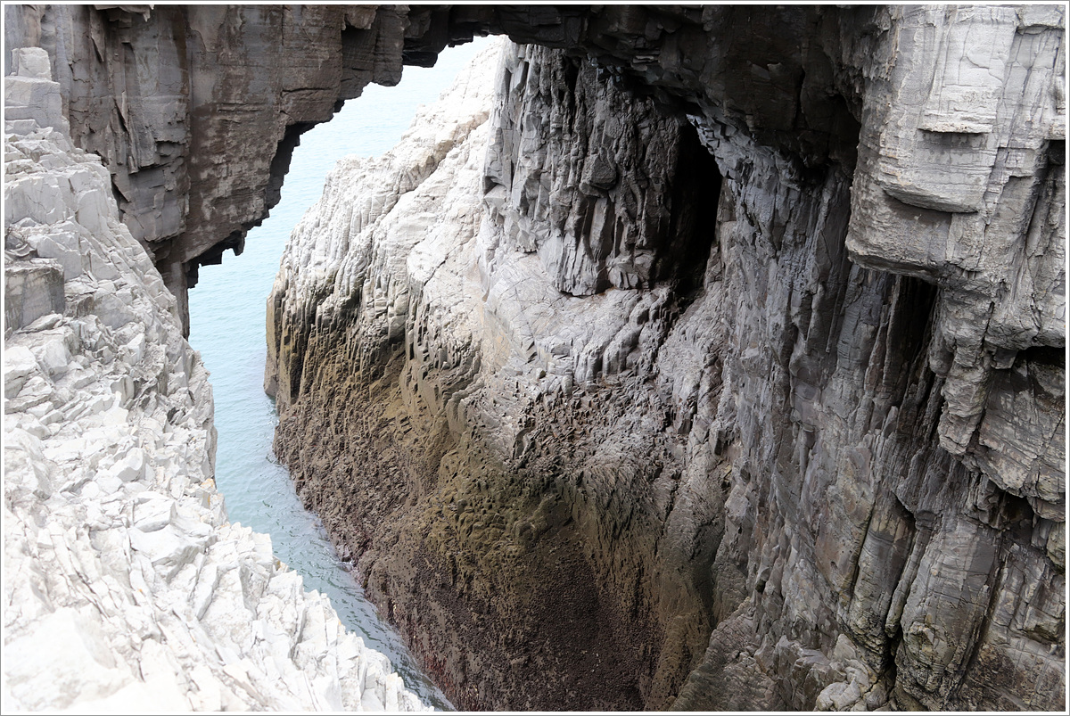 (좌측해안 앞 수직으로 형성된 굴이 천공굴)