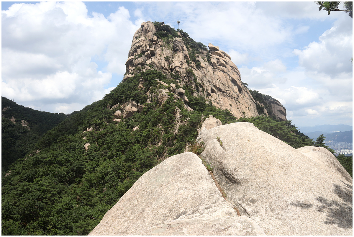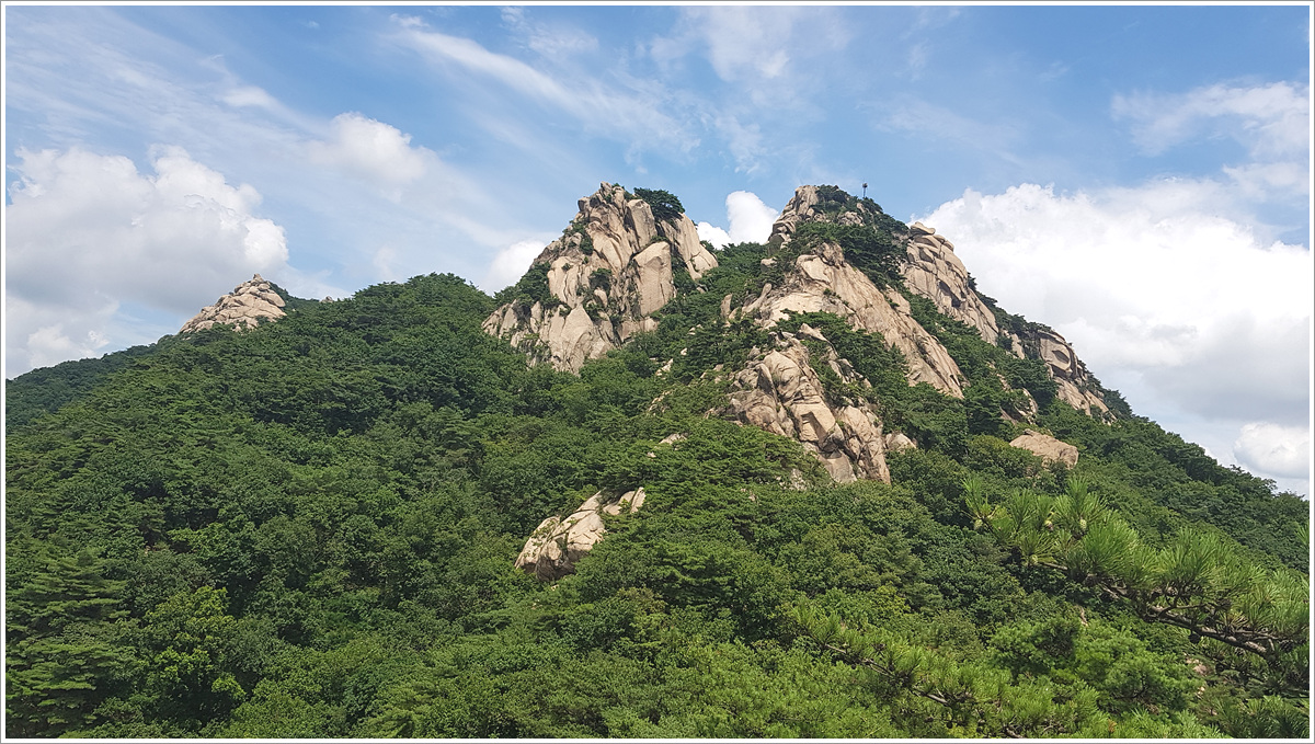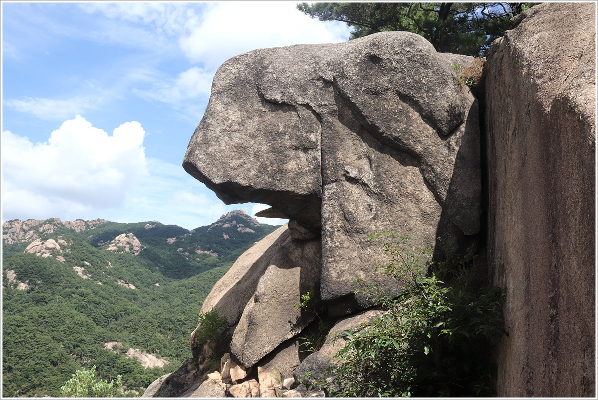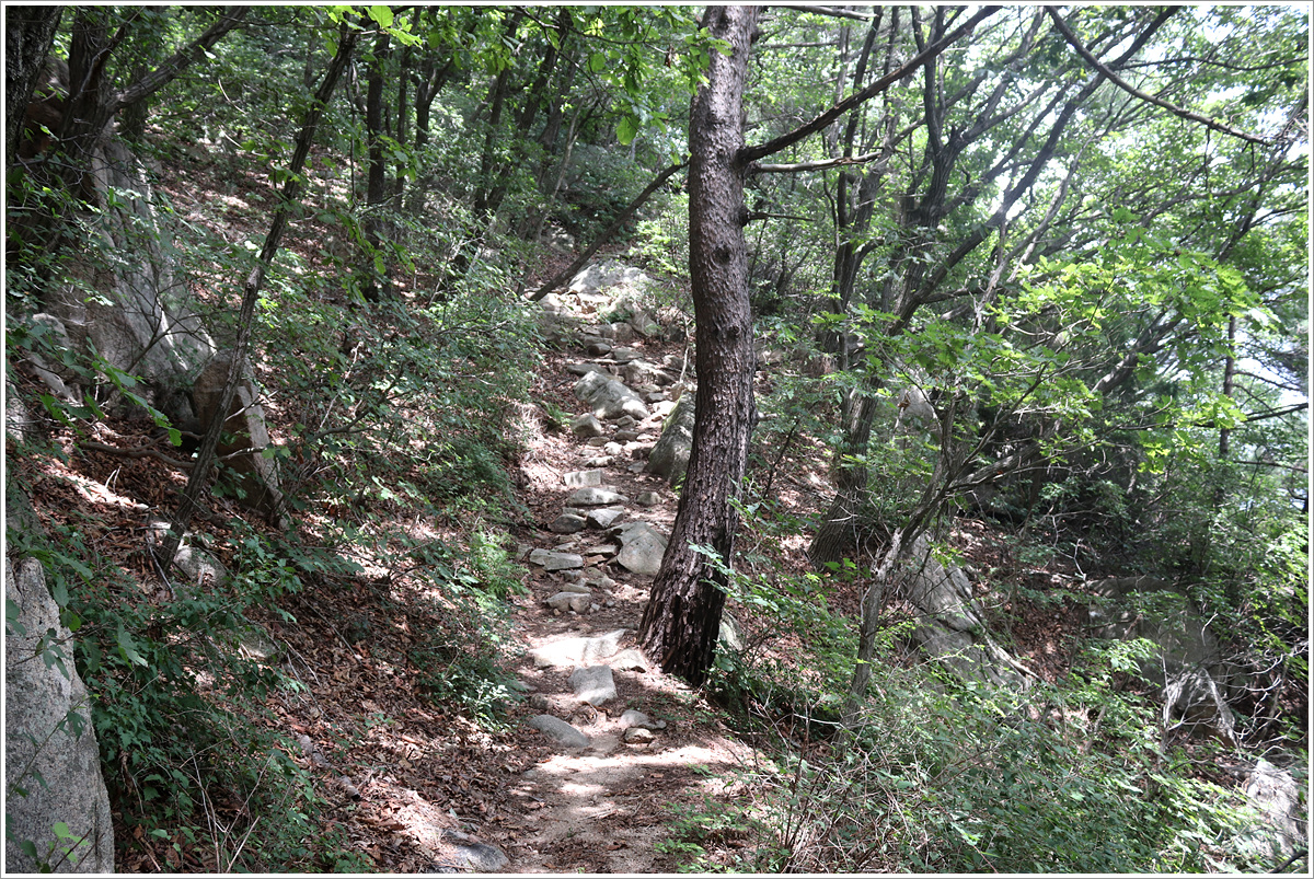 -숫사자봉(13:35~46)-우회길갈림(13:56)-허리길(14:03)-조망암반(14:05~15)-일선사계곡3거리(14:23)