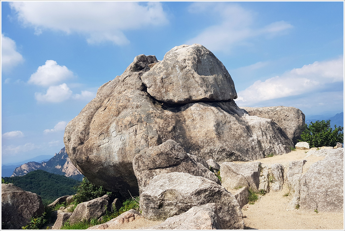 (조금 더 오르면 비로서 보현봉이 전모를 들어내는 조망바위봉이다)