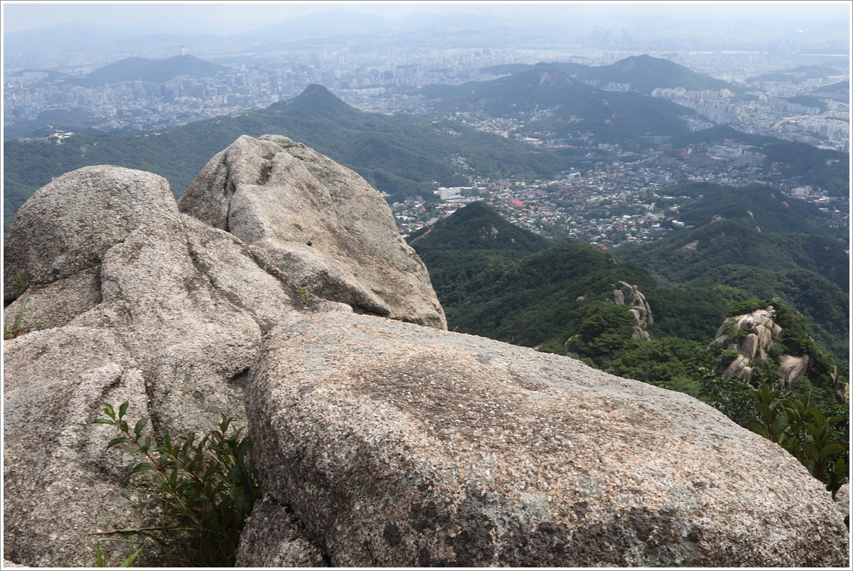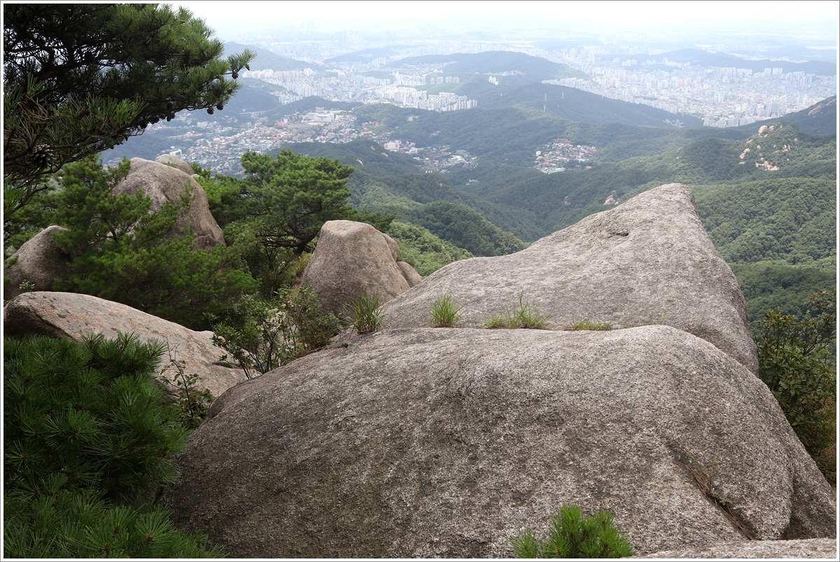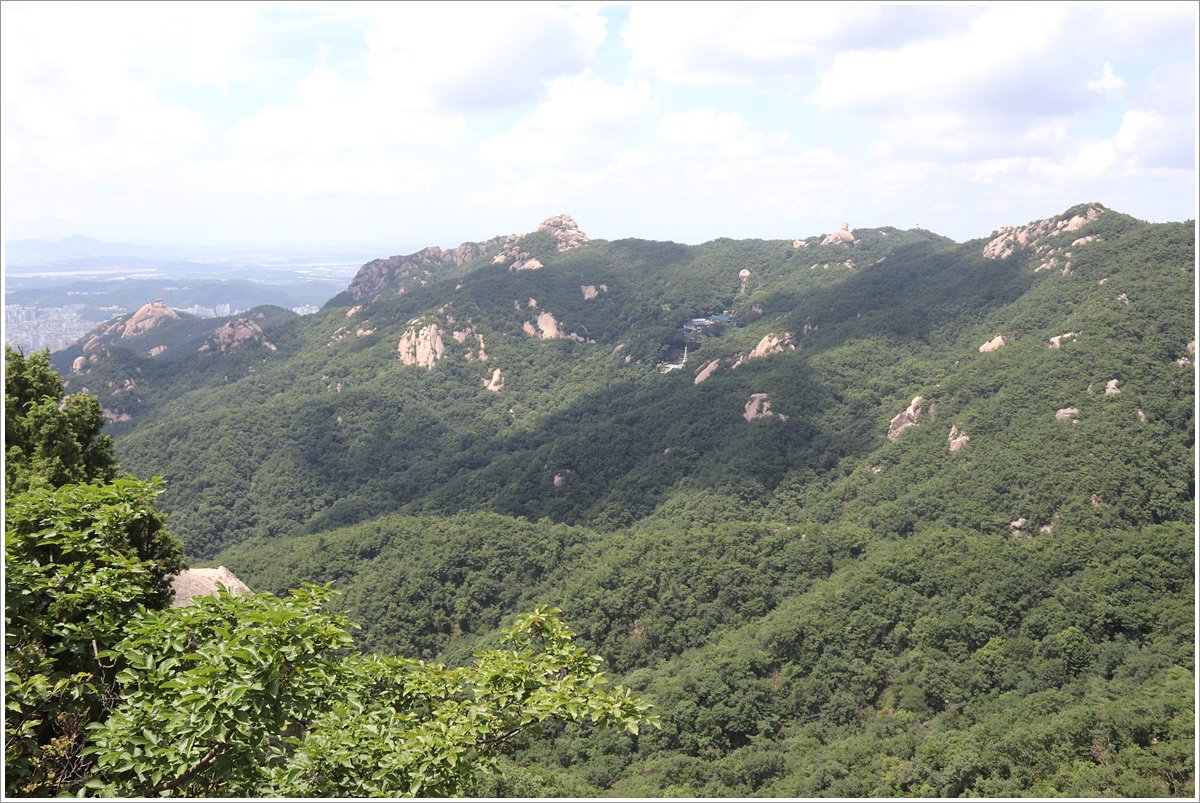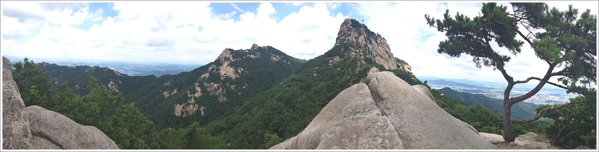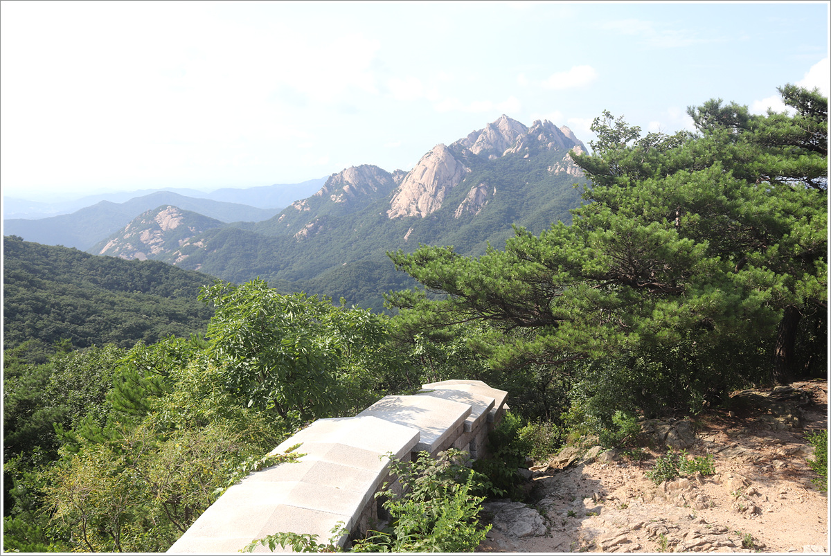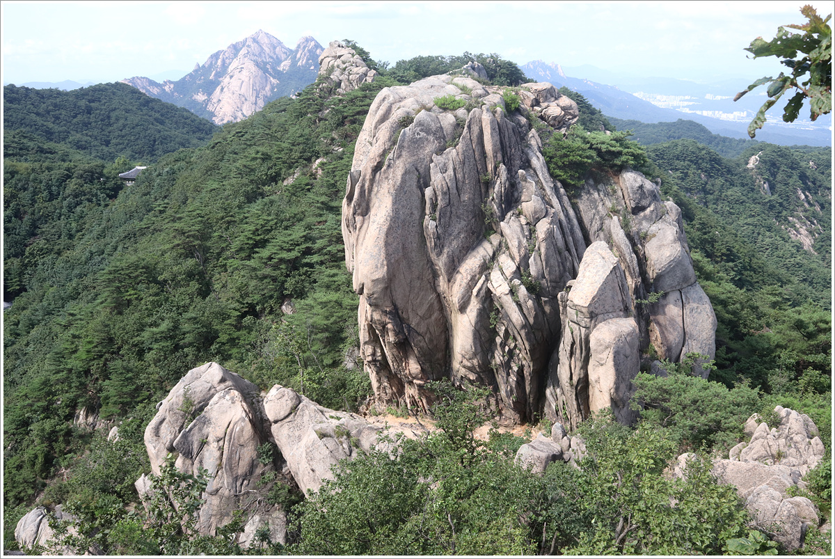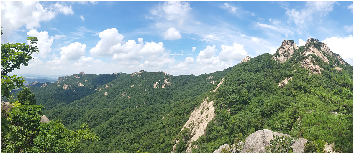 (사자봉 전망대에서 좌측 숫사자봉... 우측 암사자봉과 그 뒤 보현봉)