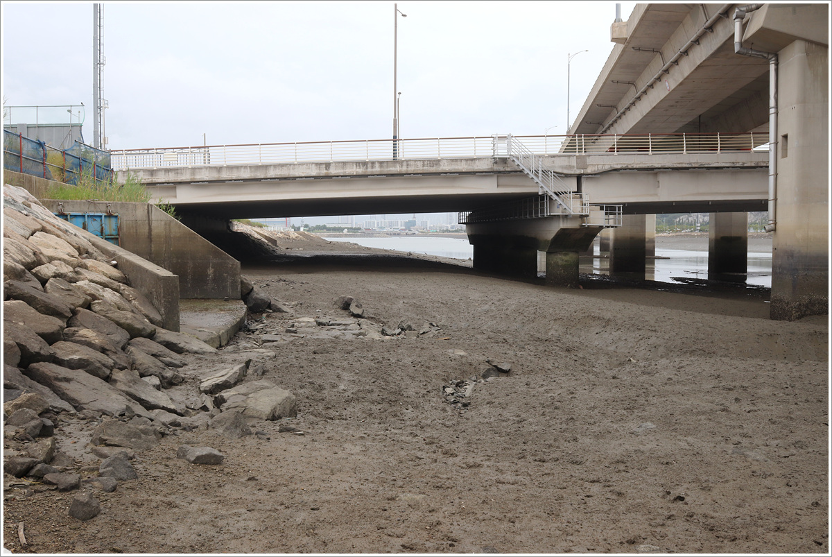 (내심 아암1교를 건너 국제항만로쪽으로 연결이 되는지 확인을 한 뒤 가능할 경우 국제항만로를 따른다고 생각했지만 수로가 나오면서 다리까지는 다소 빠지는 뻘로 이루어진 상태라 이곳 수로 직전까지만 진행하고 포기)